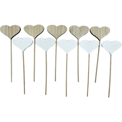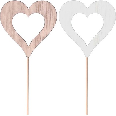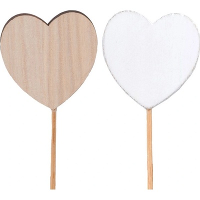 Zápich dřevěný o délce 70 mm se špejlí a motivem srdíčka. Provedení je dodáváno v mixu barev – přírodní a bílá.