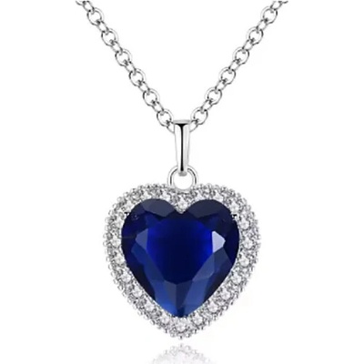 Elegantní náhrdelník Titanic – Srdce oceánu s modrým krystalem ve tvaru srdce, délka 42+5 cm, ideální jako romantický dárek.