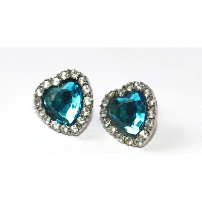 Visací náušnice Srdce oceánu jsou inspirované náhrdelníkem z filmu Titanic. Kámen je napodobenina smaragdu, tmavé tyrkysové (zelenomodré oceánové) barvy. Materiálem je bižuterní kov zlaté barvy, velikost přívěsku je 1,4 cm dodávka zahrnuje 1pár visacích náušnic...