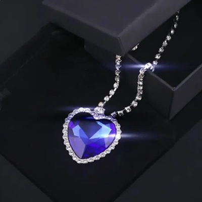 Láska, kterou nezničí ani ničivý led, je stále silná a vášnivá. Taková je pravá láska Kate a Leonarda z filmu Titanic. Světoznámý šperk z Titanicu srdce oceánu může být i Váš. Nádherné zářivé modré srdce lemované čirými krystalky, které je upevněno na štrasovém řetízku...