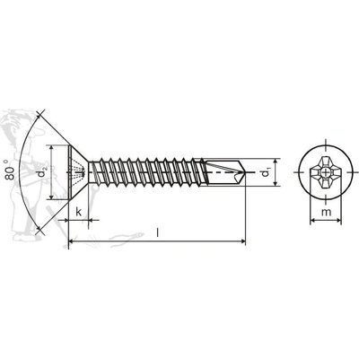 Samovrtný vrut TEX - do plechu - 5,5 x 32 mm, zápustná hlava s drážkou PH (křížová) - Průměr vrutu: 5,5 mm - Délka vrutu: 32 mm - Zápustná hlava s křížovou drážou PH - Vrut...