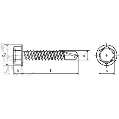 Šroub samořezný DIN 7504K s šestihrannou hlavou Rozměr: 6,3x150 mm Samořezný TEX šroub do plechu se šestihrannou hlavou a lisovací podložkou. Šrouby DIN 7504K se používají pro...
