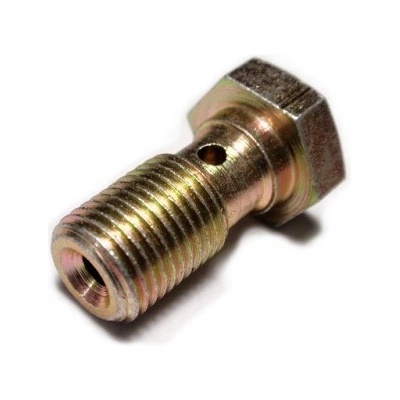 Brzdový průtokový šroub - závit M10x1Celková délka 25mmDélka závitu 12mmDélka po hlavu 20mmŠestihran pro klíč 14mmMateriál ocel, zinkováno.