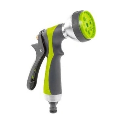 Postřikovací pistole s osmi nastavitelnými funkcemi (potok, vertikální, plný, plochý, sprcha, středový, mlha, kužel), regulací průtoku a možností uzamknutí pro trvalý průtok....
