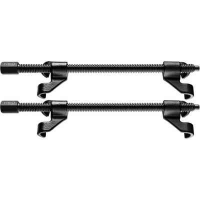Stahováky pružin 300 mm, 2 ks., 4 ?chopné body, kované, certifikát T?V M+T Pružinové stahováky NEO (č. 11-807) kované, 300 mm dlouhé. Sada obsahuje 2 stahováky pro manipulaci se...