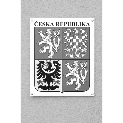 Tento velký státní znak ČR je natištěn na bílém podkladu (plastová deska o tloušťce od 2mm), bez textu.