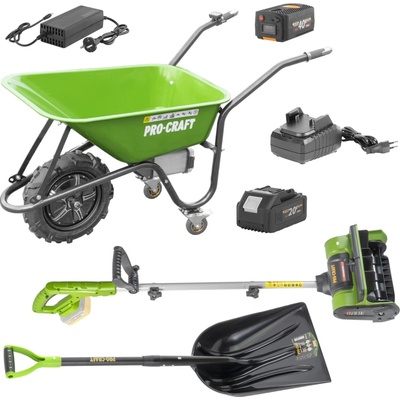Aku kolečko Procraft PWB150 + aku sněhová fréza PSB20bb + lopata GPS-1150 + baterie a nabíječka Tato sestava spojuje tři výkonné pomocníky pro celoroční práci kolem domu a...