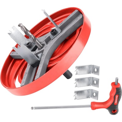 Vrták/korunka vykružovací nastavitelná, ø19-127mm, stopka ø9mm EXTOL PREMIUM Unašeč je osazen stopkou ø 9mm se třemi 3fazetami pro uchycení do vrtačky. Vykružovací korunka...