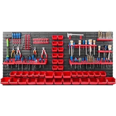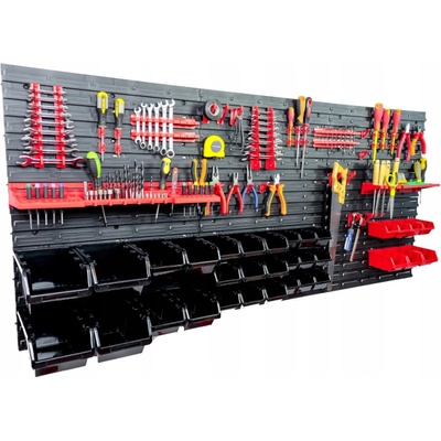 STĚNA NA NÁŘADÍ 172X78CM + 33 BOXŮ Závěsná stěna na nářadí je skvělý způsob, jak ušetřit prostor a mít přehled v nářadí a součástkách. Praktická sada pro uložení potřebného...