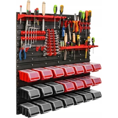 STĚNA NA NÁŘADÍ 78X39CM + 21 BOXŮ Závěsná stěna na nářadí je skvělý způsob, jak ušetřit prostor a mít přehled v nářadí a součástkách. Praktická sada pro uložení potřebného...