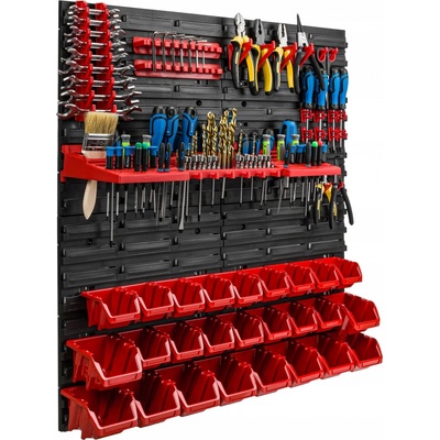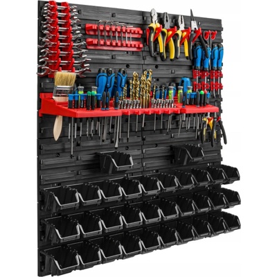 STĚNA NA NÁŘADÍ 39 X 39CM + 9 BOXŮ RED Závěsná stěna na nářadí je skvělý způsob, jak ušetřit prostor a mít přehled v nářadí a součástkách. Praktická sada pro uložení potřebného...