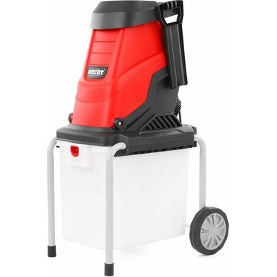 Elektrický drtič větví či jiného zahradního odpadu s vysokým výkonem, tepelnou pojistkou, prostornou sběrnou nádobou, ocelovým rámem a kolečky pro snazší manipulaci.