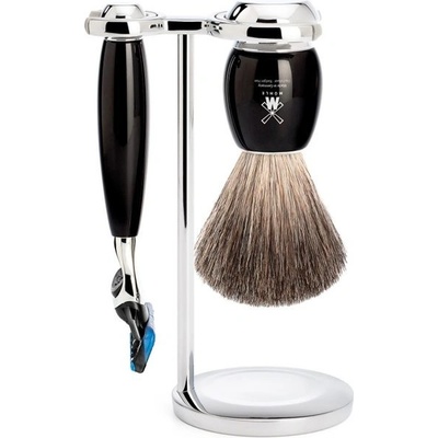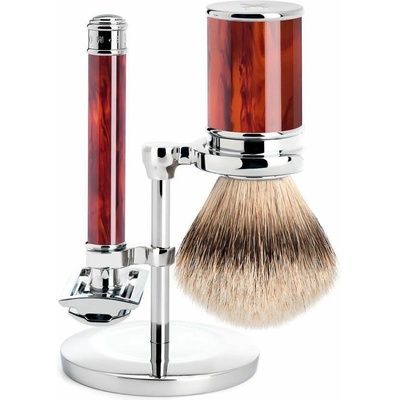 Sestava na holení Mühle Traditional - stojánek, strojek s uzavřenou hlavicí, štětka silvertip badger - želvovina
