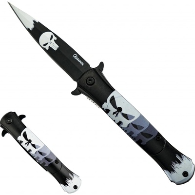Vyhazovací nůž "PUNISHER STILETTO" Vyhazovací nůž typu stiletto s motivem znaku lebky Punishera. Tento nůž je skvělým doplňkem pro každého sběratele nožů nebo milovníka...