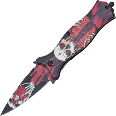 Kapesní Nůž Stiletto "Krvavá lebka" Flipper Design a Vlastnosti Extravagantní dekorace: Čepel i rukojeť jsou z obou stran zdobeny digitálním potiskem s temným motivem lebky a...
