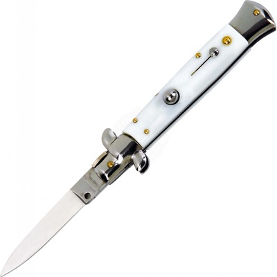 Levný vyhazovací nůž Stiletto, bílá Tento levný vyhazovací nůž Stiletto je k dostání ve 4 různých barvách pláště střenky - bílá, černá, červená, modrá. Celková délka cca 110...