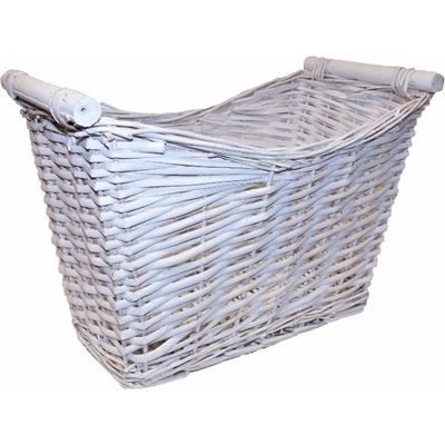 Proutěný koš na noviny, s dřevěnými úchyty. Barva bílá. Rozměry: d 40 x š 23 x v 27 cm