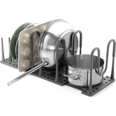Víceúčelový úložný stojan – Pořádek ve vaší kuchyni Udělejte si pořádek ve skříni s tímto praktickým organizérem! Ideální pro uspořádání plechů do trouby, krájecích prkének, pekáčů, pánví a jejich poklic. Skvěle poslouží i jako stojan na kuchařky, které budete mít vždy...