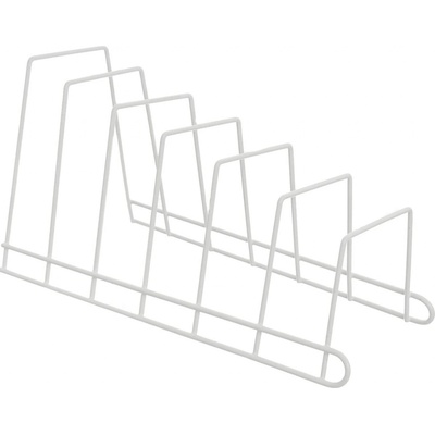 Praktický kuchyňský organizér z kovu pro vertikální uložení až 6 kusů – poklic, talířů nebo krájecích prkének. Stabilní drátěná konstrukce v bílé barvě šetří místo ve skříňkách i zásuvkách, zajišťuje přehlednost a chrání poklice před poškrábáním. Snadno se čistí a...