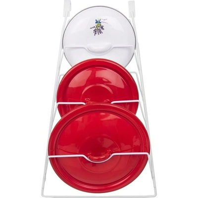 Praktický drátěný stojan s plastovou povrchovou úpravou zajistí bezpečné i přehledné uložení až 6 kusů poklic velikosti cca 14-28 cm. Ať už nerezových, smaltovaných i skleněných. Podle potřeby tak budou srovnané vždy po ruce, stačí jej umístit zevnitř na dvířka...