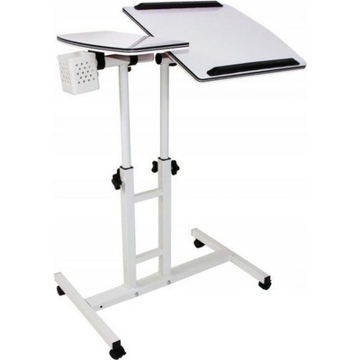Praktický polohovatelný pracovní stůl v barvě bílé, se ideálně hodí pro práci s laptopem nebo s notebookem. Má dvě samostatné pracovní desky, které mají nastavitelný úhel...