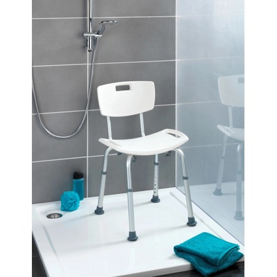Stabilní koupelnová stolička s úložným prostorem pod sedátkem. Vhodná do sprchového koutu.