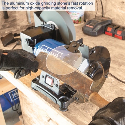 Stolní bruska, určená pro dokonalé naostření kovových nástrojů. Jemné nabroušení kuchyňských nožů, nůžek, sekáčků, řezbářských nástrojů apod.; odstranění drobných otřepů a...