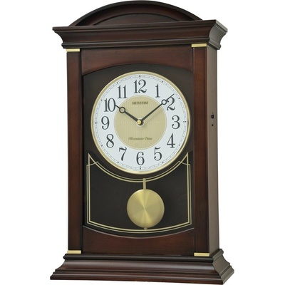 Krásné stylové dřevěné stolní hodiny s kyvadlem japonského výrobce Rhythm s možností obdbíjení Westminster nebo melodií - Odbíjení Westminster v celou hodinu nebo každou...