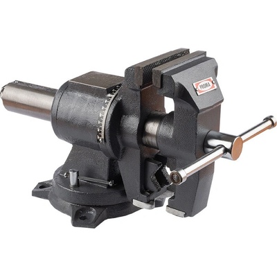 Otočný dílenský svěrák s čelistmi z vysoce kvalitní oceli kalenými na 45 HRC ± 5 HRC. Horizontálně otočná základna v rozsahu 360°. Litinové tělo s opracovanými upínacími...