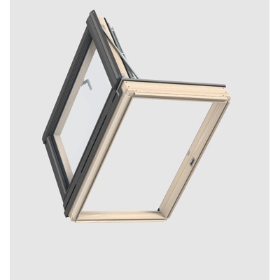 Dřevěné výklopné střešní okno VELUX GPU 0050 Výklopně-kyvné střešní okno GPU 0050 ve plastovém provedení na dřevěném jádru lze otevřít až 45°. Použita jsou izolační dvojskla...