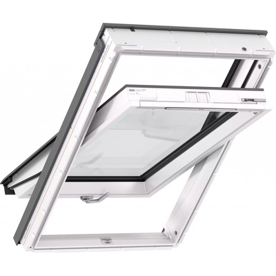 Bezúdržbové okno VELUX GPU 0062 pro pasivní domy Bílé výklopně-kyvné střešní okno GPU 0062 se zasklením VELUX --62 (nízkoenergetické izolační trojsklo s bezpečným sklem,...