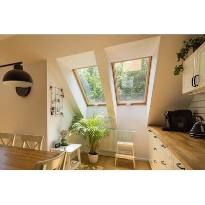 Dřevěné kyvné střešní okno Velux GZL 1050 Život je plný rozhodování, rozhodněte se zda-li chcete své střešní okno otevírat nahoře či dole.Firma Velux přišla s možností vyběru...