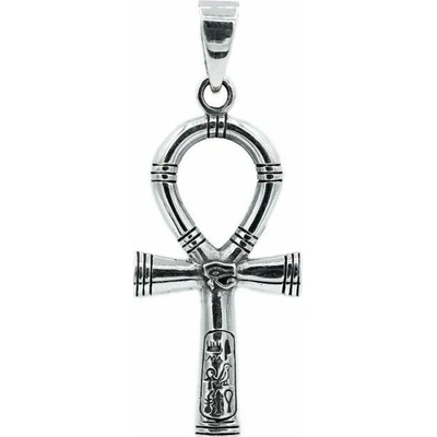 Stříbrný přívěsek Anch zdobený dalšími egyptskými symboly. Rozměry: šířka x výška včetně očka 2,5 cm x 5,8 cm Vnitřní rozměry očka: 6x4 mm Váha: 7,73 g Povrchová úprava -...