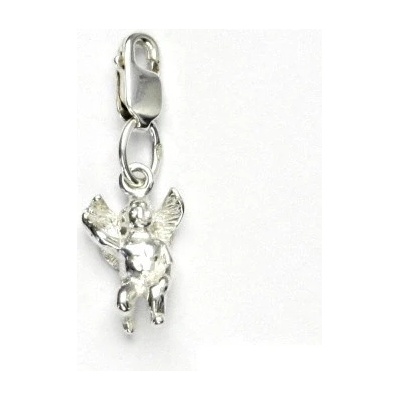 Stříbrný přívěsek ve tvaru andělíčka na karabinku. Materiál přívěsku je stříbro 925/1000. Rozměr přívěsku je 24 mm včetně očka na výšku a 7 mm na šířku.