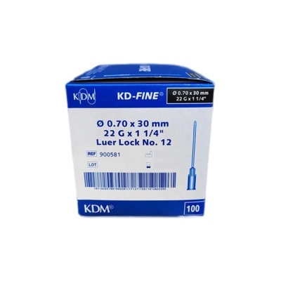 0,7 x 30, 22G 1 1/4" černá Injekční jehla KD-Fine 0,7 x 30, 22G 1 1/4" - černá sterilní, 100 ks v balení Značkové jednorázové injekční jehly z vysoce kvalitní oceli s ostrým...