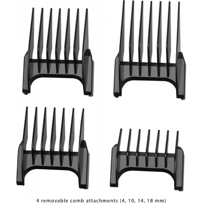 Drátové/Bezdrátové použití VÝdrž baterie až 60 minut Nabíjení: 8 hodin Uhlíkovo-titanové nože 24 zastřihovacích variací 0,5mm-25mm (po 1mm velikostí) Nastavení délky střihu...