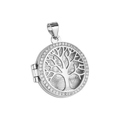 Otevírací stříbrný přívěsek kulatého tvaru - medailon s motivem strom života.Přívěsek je zdobený zirkony čiré barvy.Přívěsek strom života je velmi oblíbený přívěsek, který má...