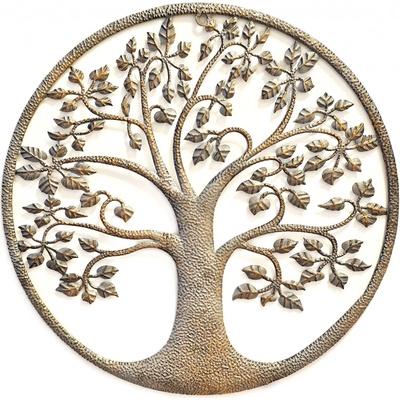 Kovová nástěnná dekorace - strom života 49,8 cm starozlatá