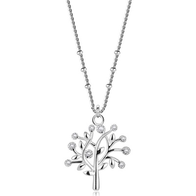 Náhrdelník ze stříbra 925, čtvercový řetízek, strom života, čiré zirkony, pérové zapínání.