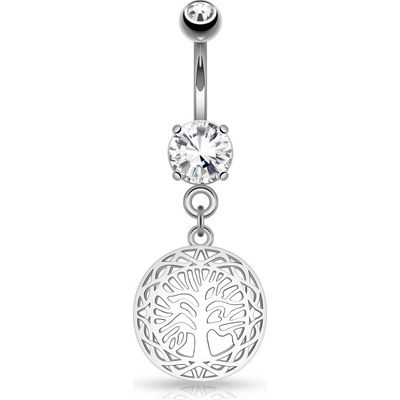 Piercing do pupíku s motivem strom života Tyčka a kulička piercingu je vyrobena z kvalitní chirurgické oceli jakosti 316L a ozdobná visací část je vyrobena z nezávarné...