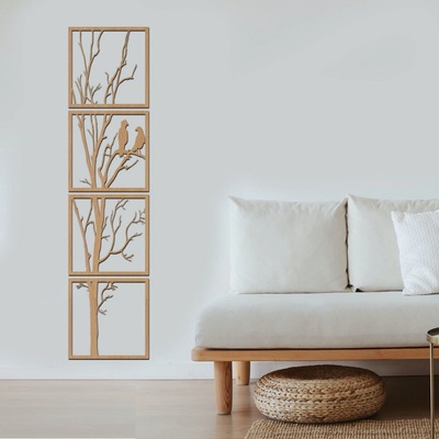 4dílný obraz Ptačí strom - Příběh svobody, radosti a spojení s přírodou Tento čtyřdílný dřevěný obraz PTAČÍ STROM v sobě nese jemnost přírody a dynamiku života. Strom plný...