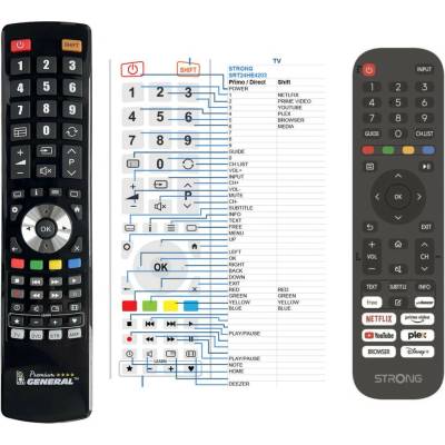 Náhradní dálkový ovladač STRONG SRT24HE4203 - 100% náhrada 1:1 za originální dálkový ovladač. Ovladač je dodáván ve verzi značkového dálkového ovladače General Premium...