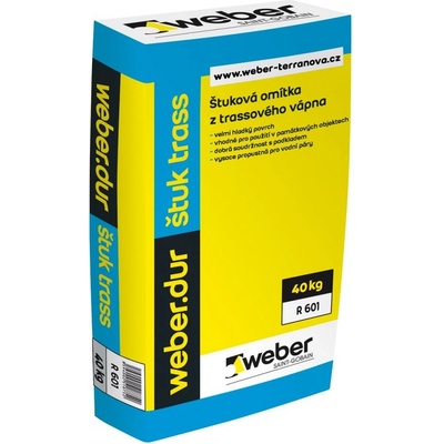 Weberdur štuk trass. Suchá omítková štuková vápenotrassová směs pro ruční zpracování. - Barva: přírodně šedobílá. - Spotřeba: 1,4 kg/mm/m2 | spotřeba vody 9,0 l/30 kg Pro...