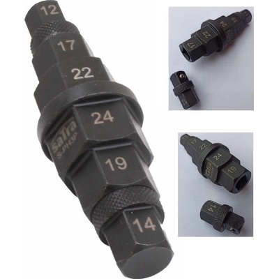 Klíč instalatérský stupňovitý na zátky velikosti 3/8" - 1" Klíč se dá nasadit na 1/2" ráčnu nebo trhák Parametry: délka: 100 mm rozměry šestihranu: 10mm 12mm 13mm 14mm 17mm...