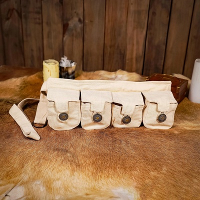 Sumka / opasek se čtyřmi kapsami, 1. sv. válka Vzhled a konstrukce Tento robustní opasek je vyroben z hustě tkaného bavlněného plátna o gramáži 220 g/m² a je k dispozici v černé...