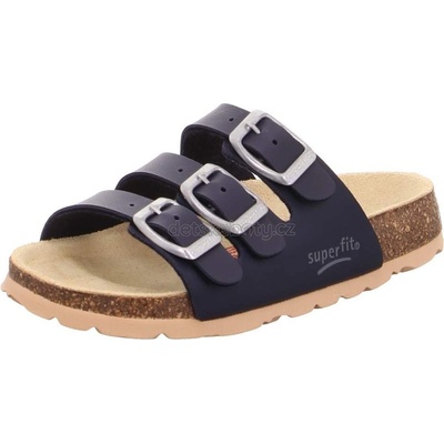 Korkové zdravotní sandále Superfit a tvarovanou stélkou v tmavě modré barvě s zelenými detaily a výraznou zelenou podrážkou. - Sednou na: normálně široké nohy - šířka WMS: M...