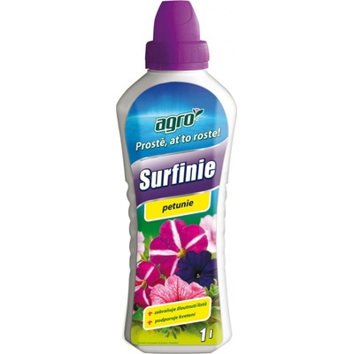 NG 2037 Hnojivo AGRO na surfinie a petunie 1l 60x100x280 Tekuté hnojivo vhodné k přihnojování surfinií a petunií. Přispívá k jejich vyvážené výživě. Obsahuje železo zabraňující...