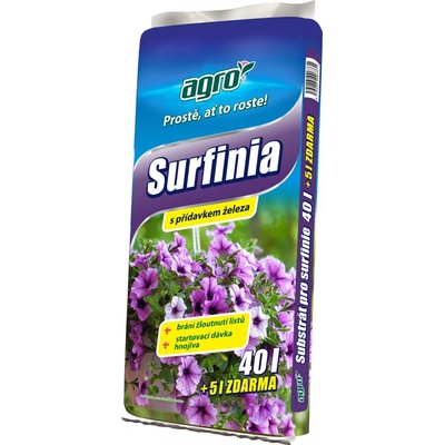Použití: vnější Využití: okrasné rostliny,dřeviny Objem (l): 45 AGRO Substrát pro surfinie je speciálně určen pro řízkování, přesazování a pěstování surfinií. Výsledkem je...