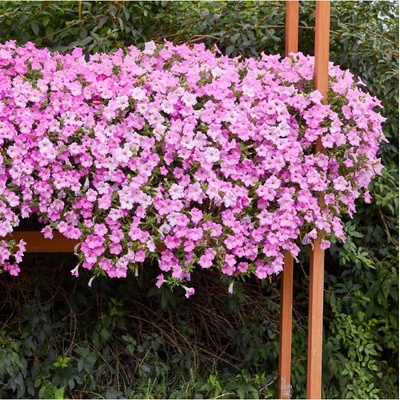 Převislé petúnie s lososově růžovými květy zkrášlují balkony a terasy bohatými kaskádami. Je odolná vůči povětrnostním vlivům, kvete od jara do mrazů a vyžaduje minimální péči.