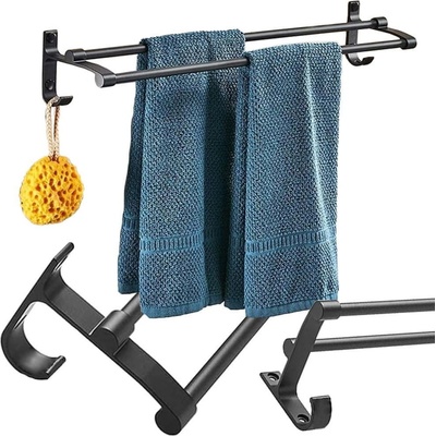 Dvojitý sušák na ručníky, černá Dvojitý držák na ručníky je praktickým a stylovým řešením pro pohodlné uložení ručníků v koupelně. Věšák se skládá ze dvou rovnoběžných tyčí,...